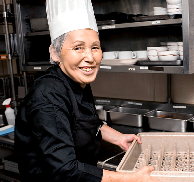 前々から興味のあった「食」の仕事に50代後半で初挑戦。老若男女さまざまなクルーが受け入れてくれ、ホッとしたのを覚えています。手際よく料理を提供できた時や、店長に助かっていますと言われた時に、この仕事を選んでよかったと感じます。生活にも活力が出ました。