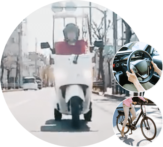 - バイク(ジャイロ)は三輪車ですので、二輪車のバイクに比べ安定しています。また、屋根付きなので視界も確保され安心です。